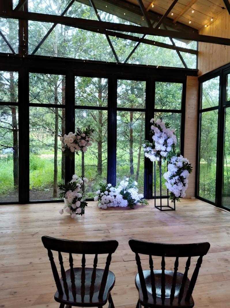 Ресторан, номерной фонд, пруд, домик невесты, большая территория для фотосессии.