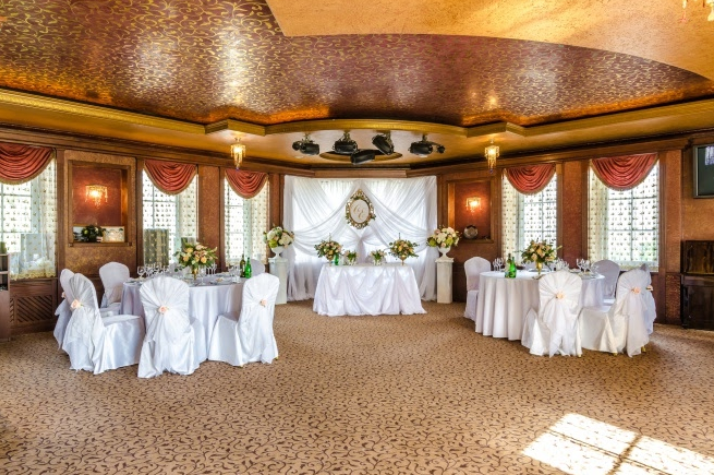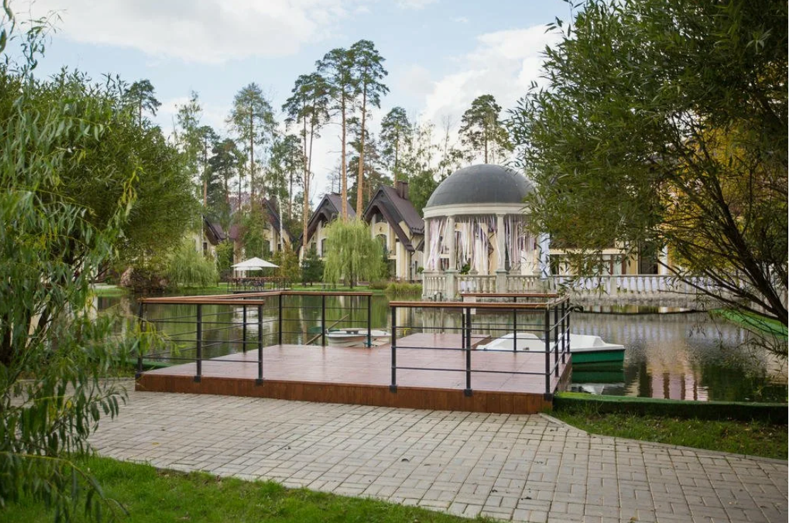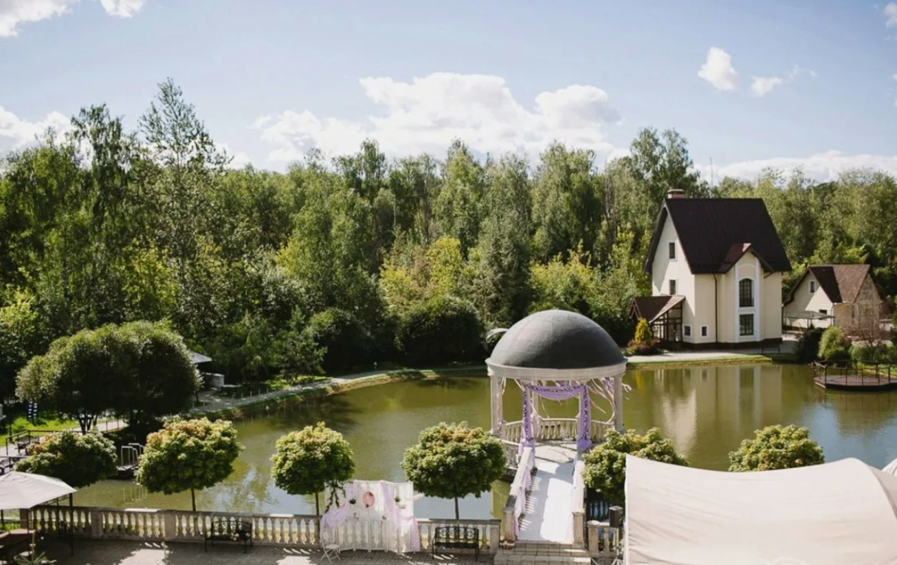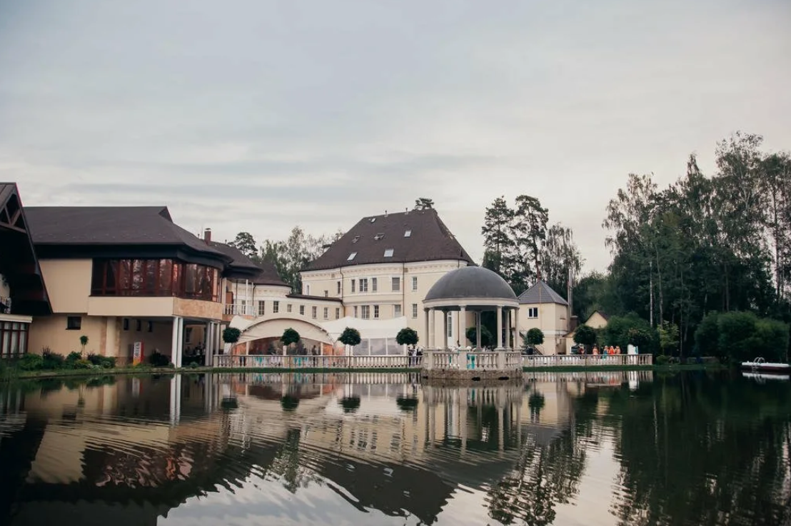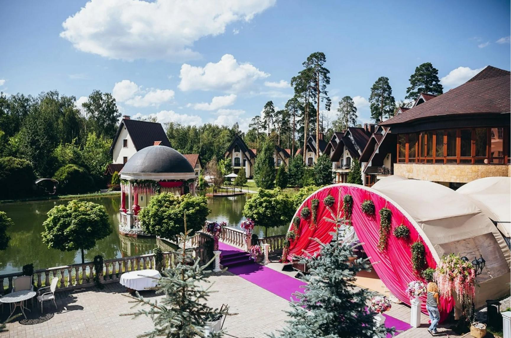Рестораны, возможность провести свадьбу в одном месте с выездной церемонией. Есть номерной фонд и коттеджи.