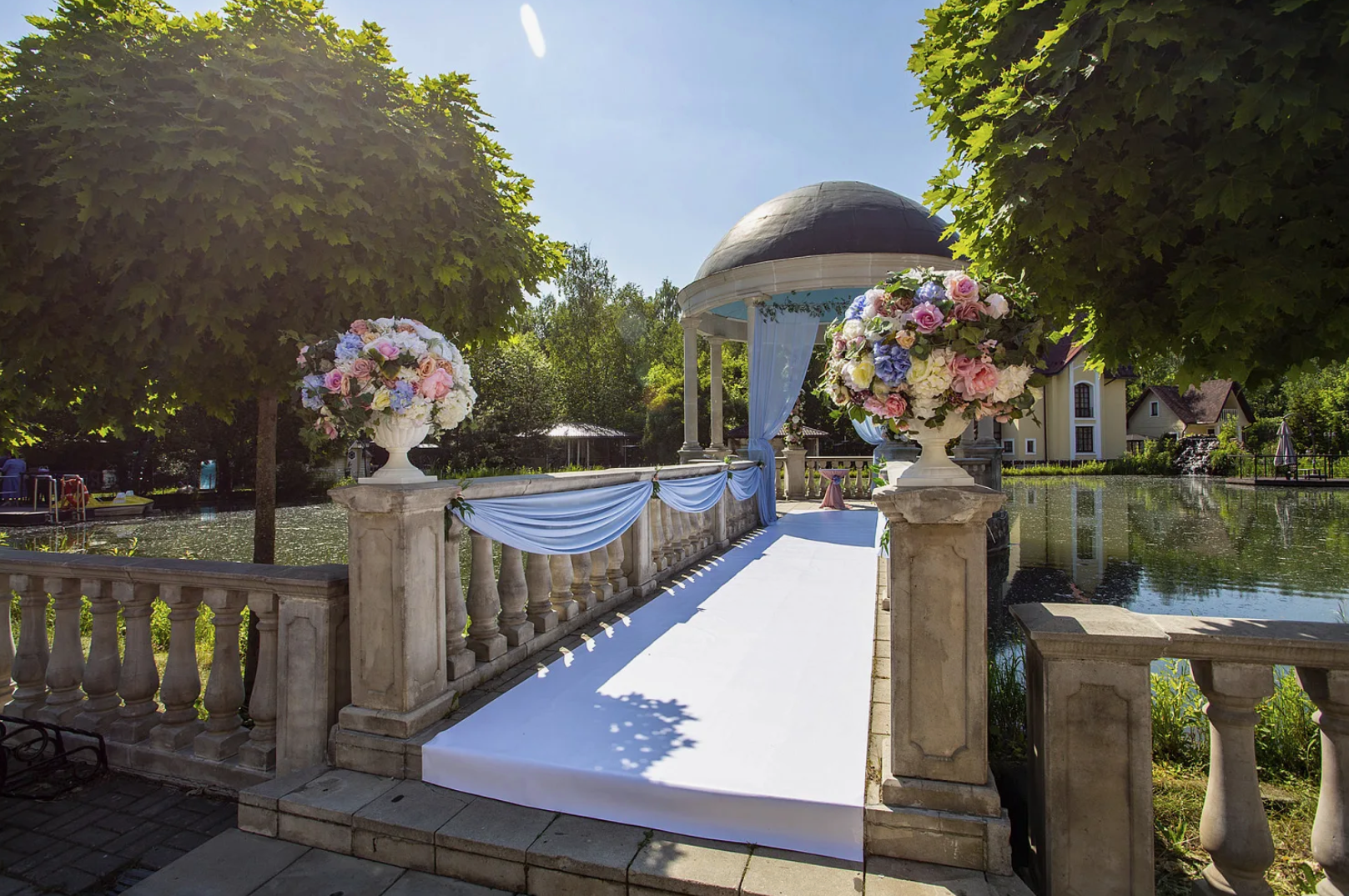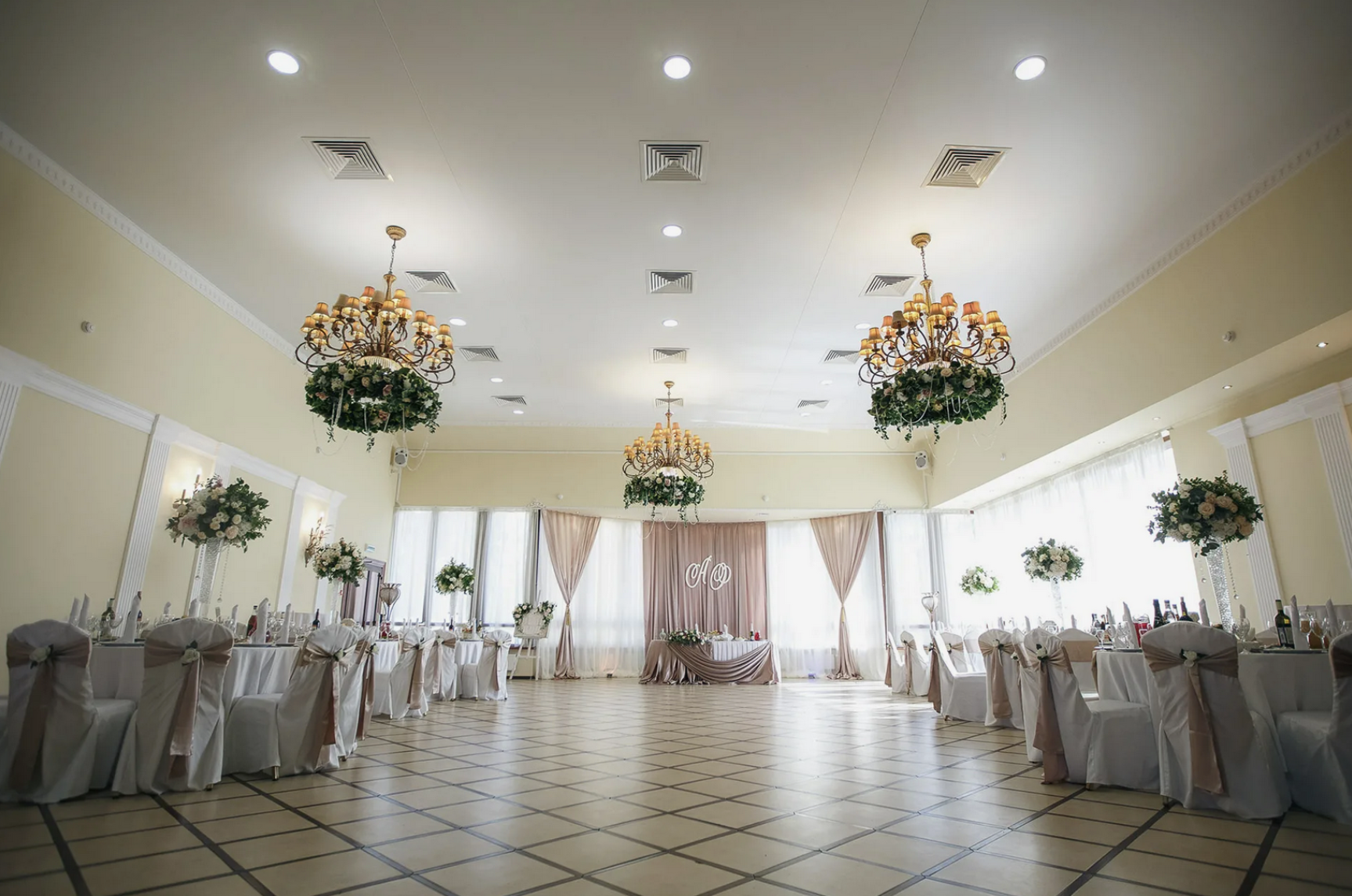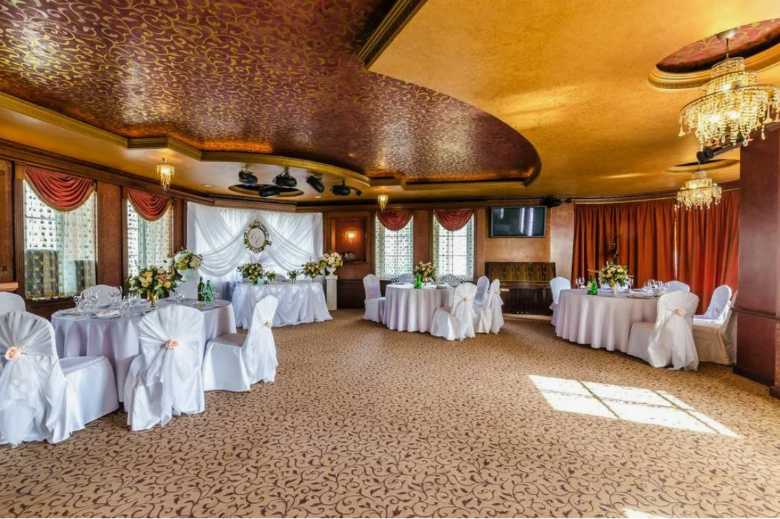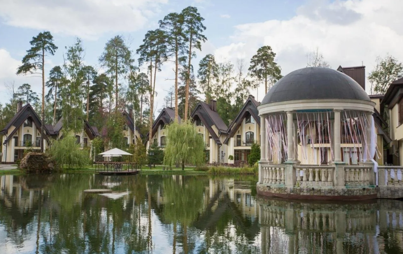 Рестораны, возможность провести свадьбу в одном месте с выездной церемонией. Есть номерной фонд и коттеджи.