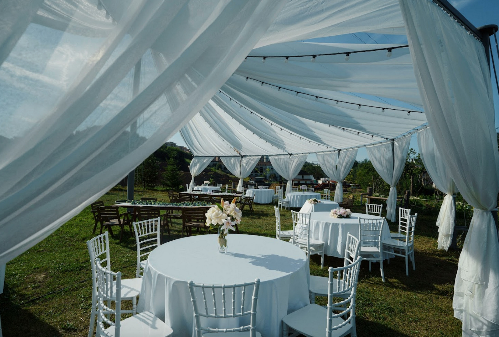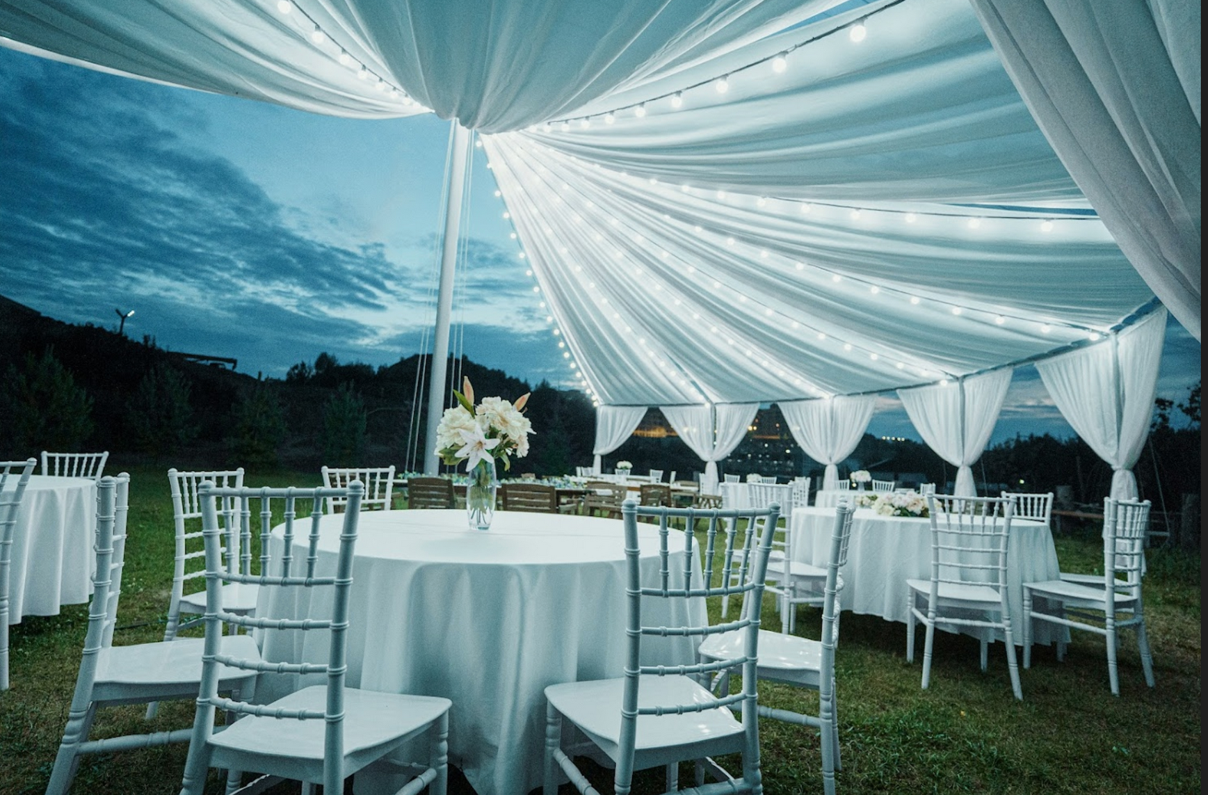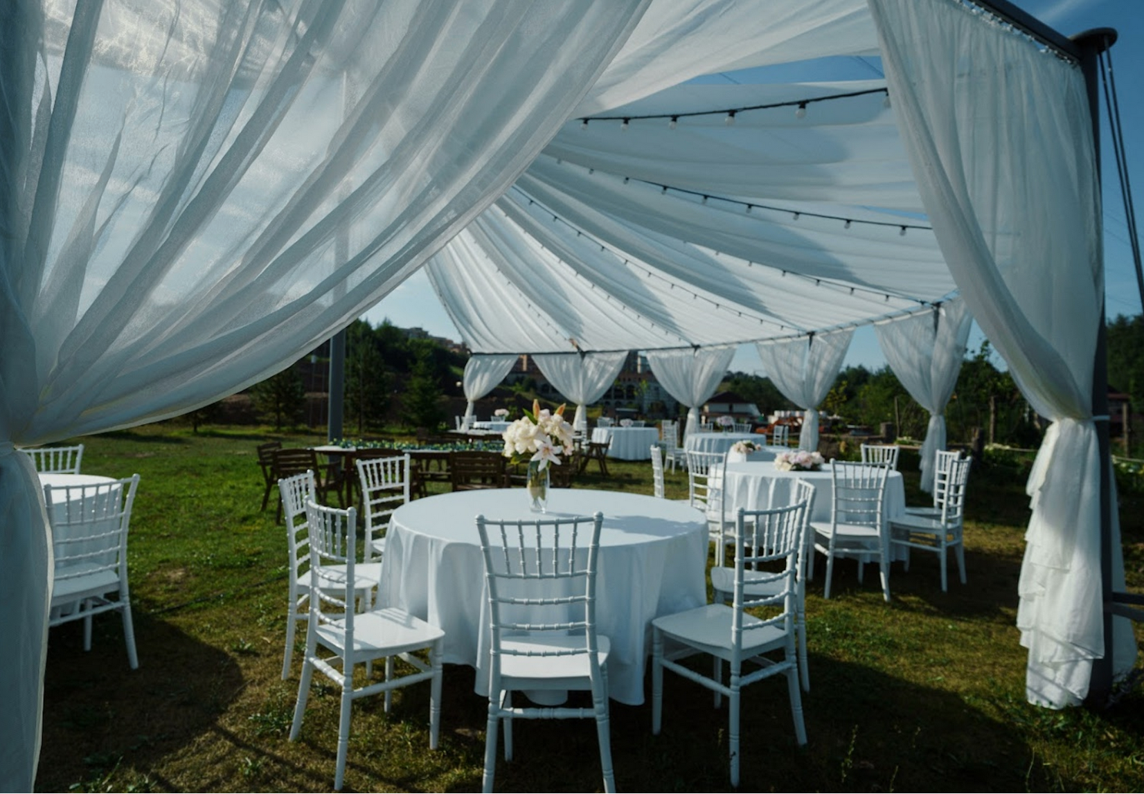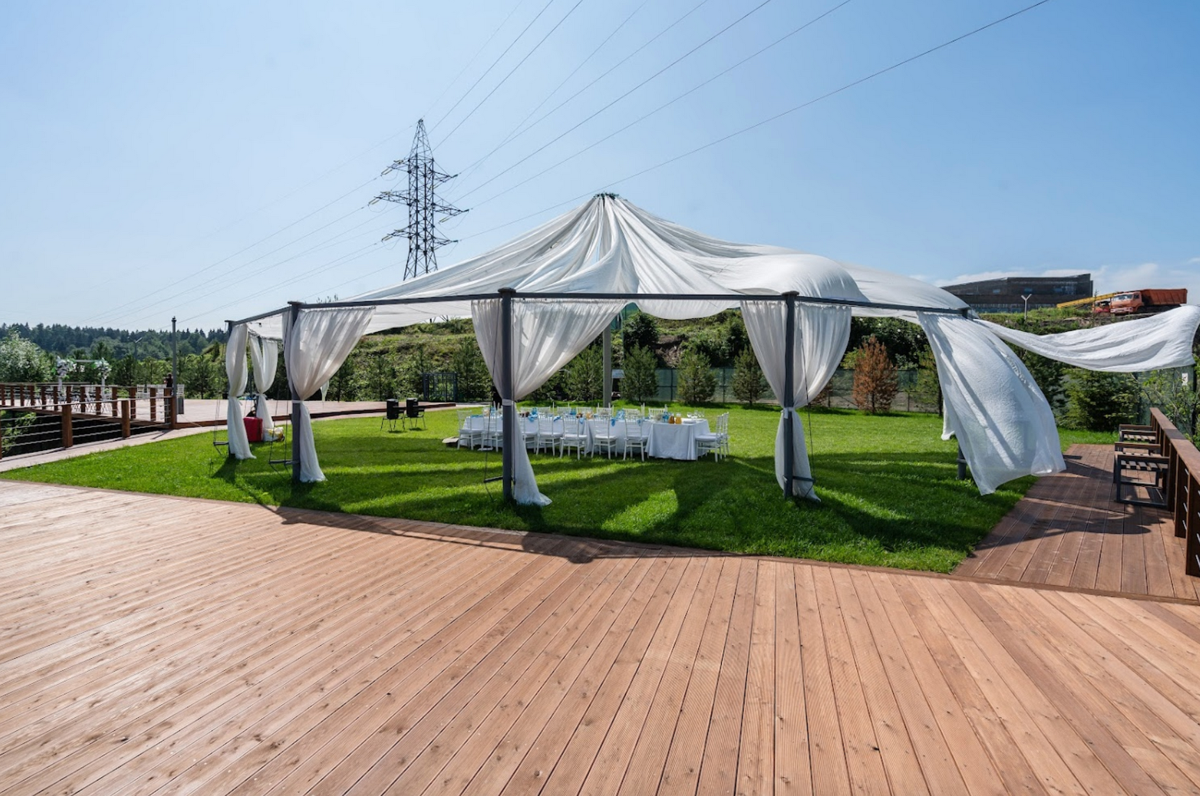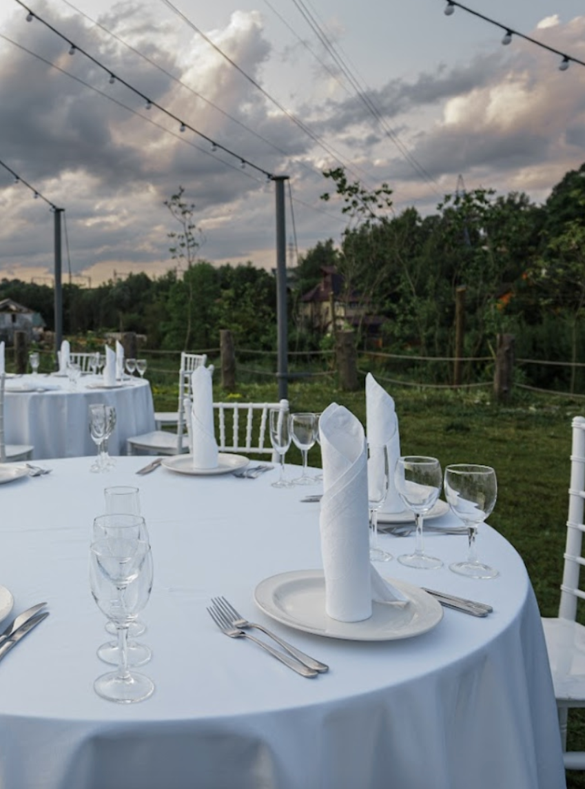 Открытый шатёр, номерной фонд, река, бассейн, большая территория для фотосессии.