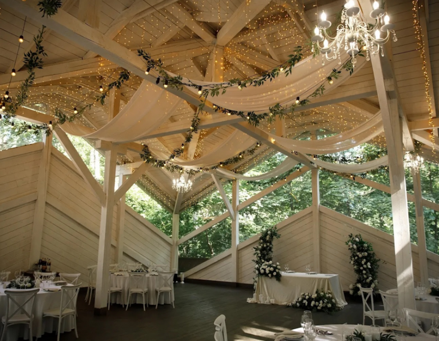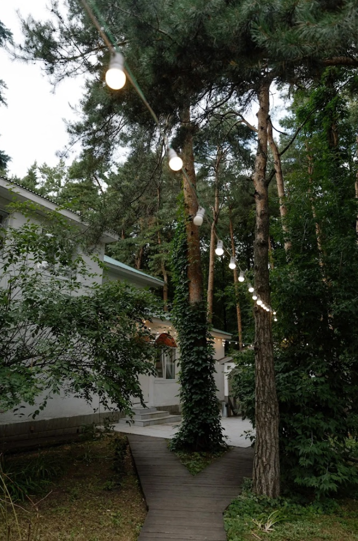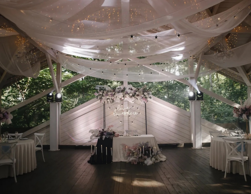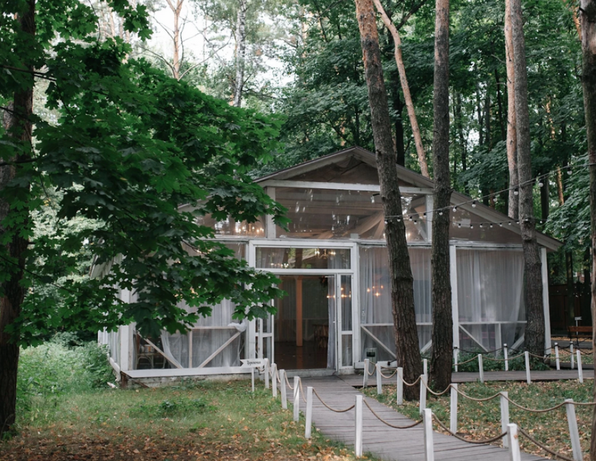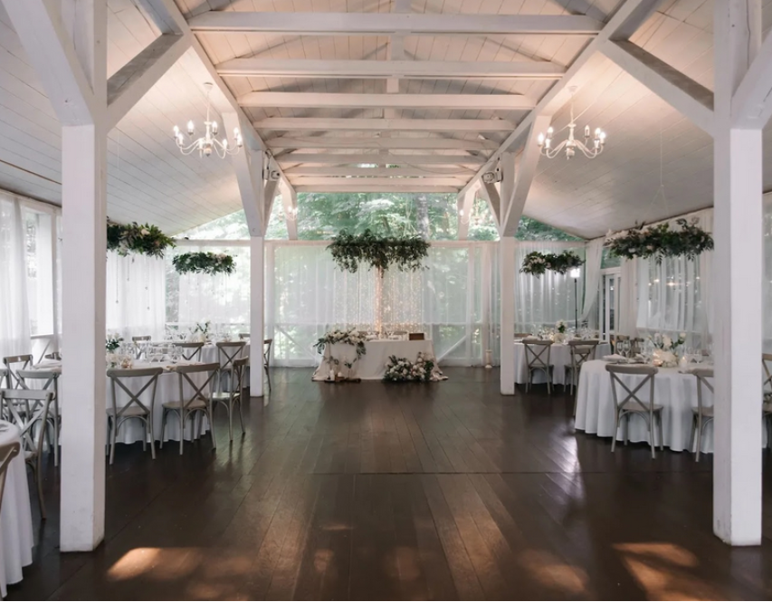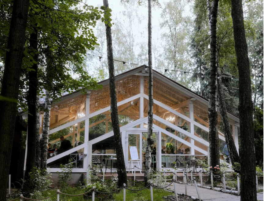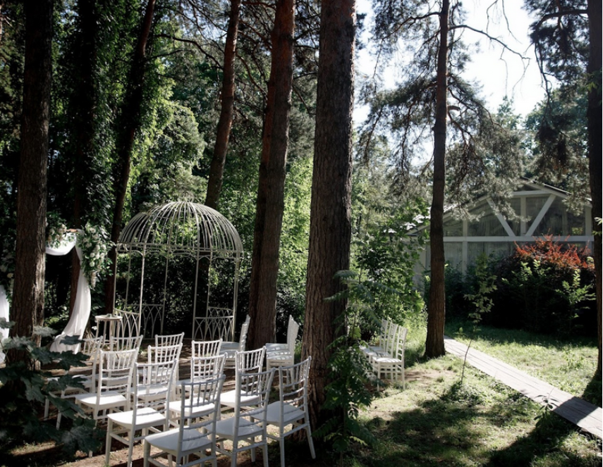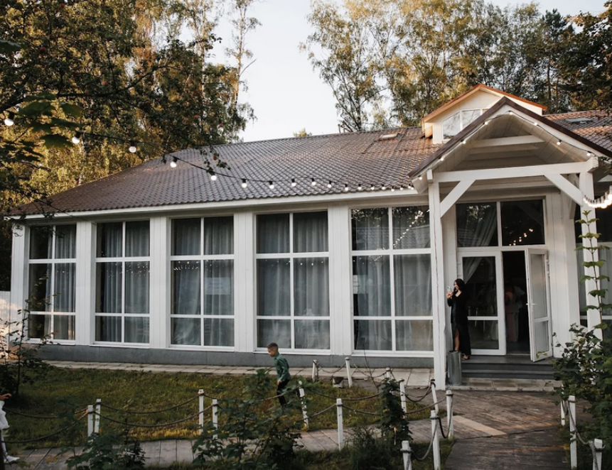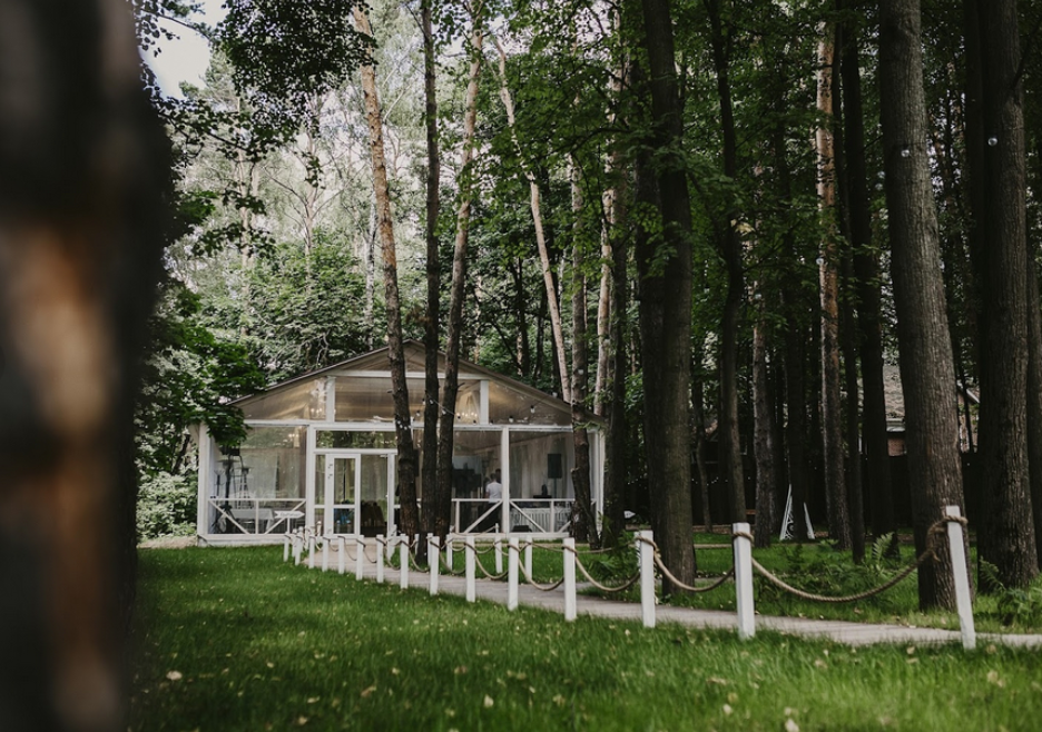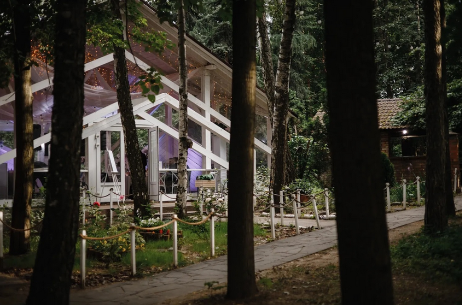 Возможность провести свадьбу в одном месте с выездной церемонией. Несколько ресторанов. Есть коттеджи для размещения пары и гостей.
