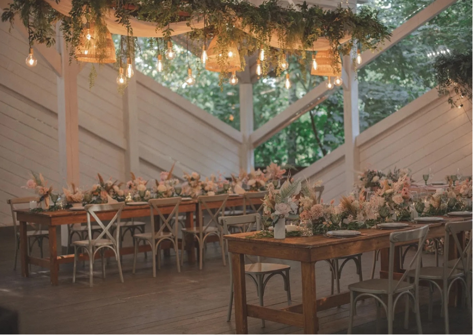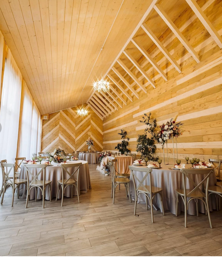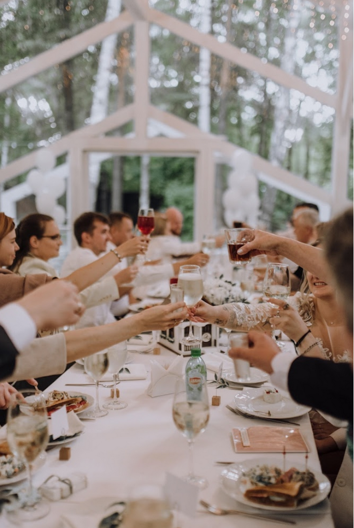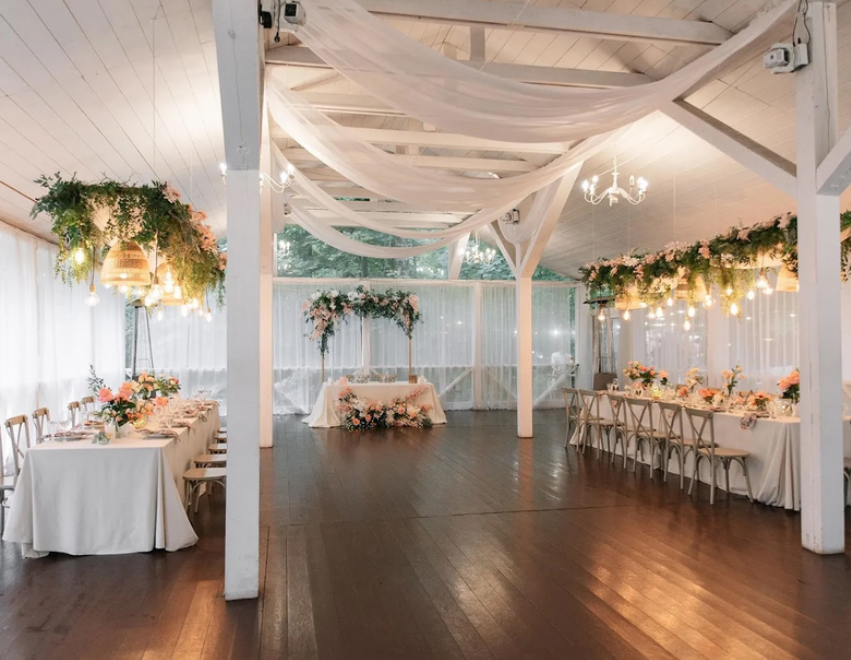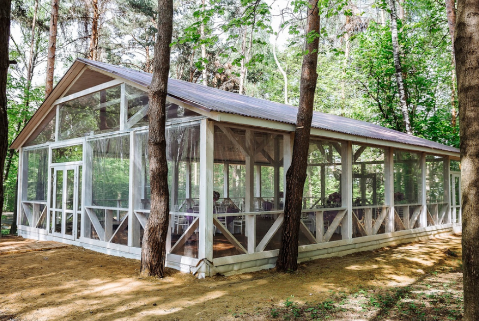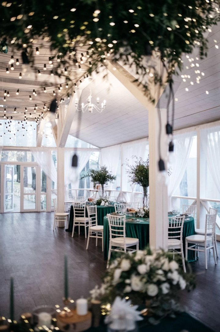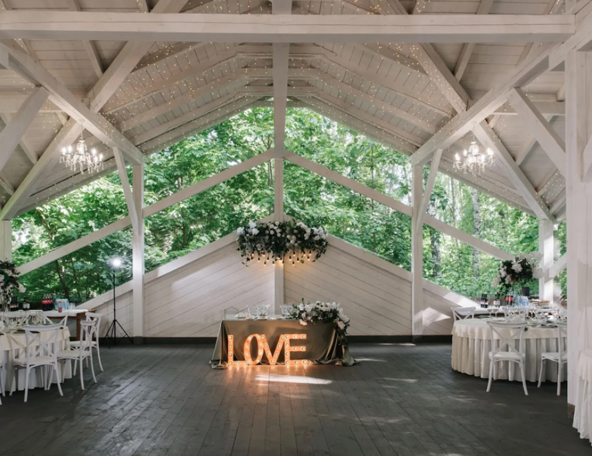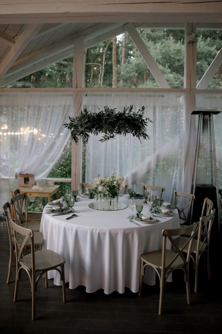 Возможность провести свадьбу в одном месте с выездной церемонией. Несколько ресторанов. Есть коттеджи для размещения пары и гостей.