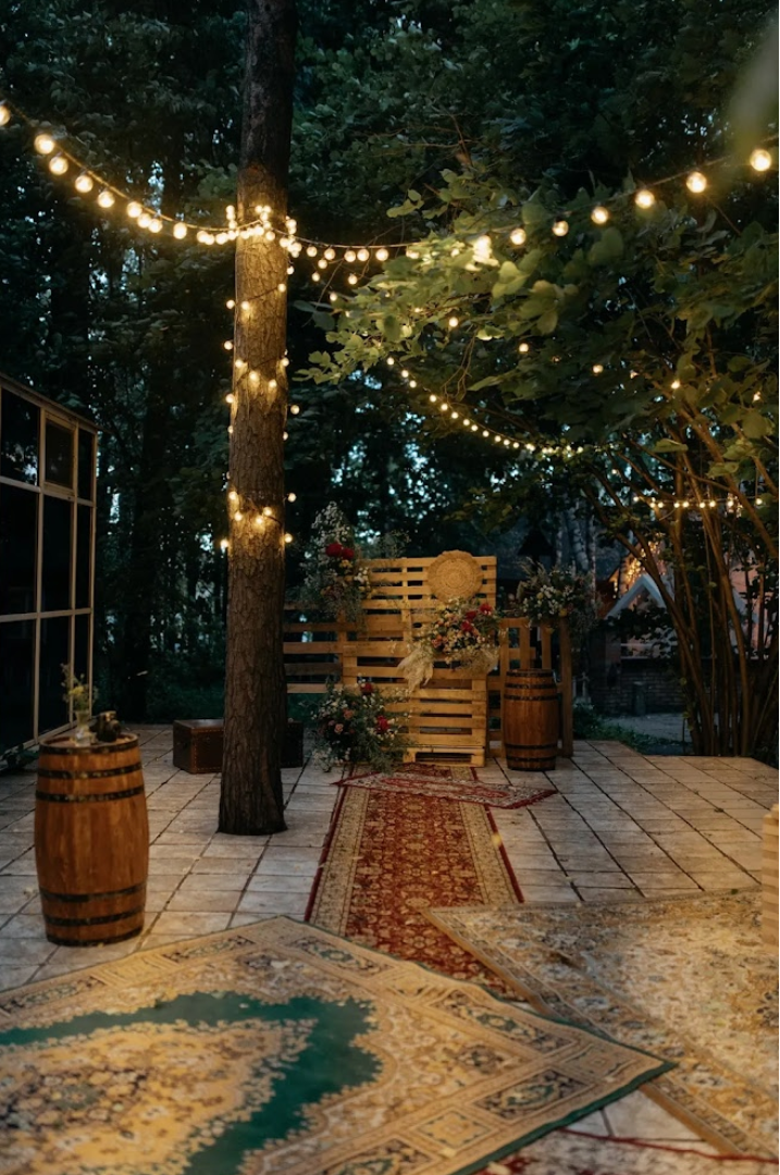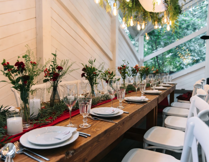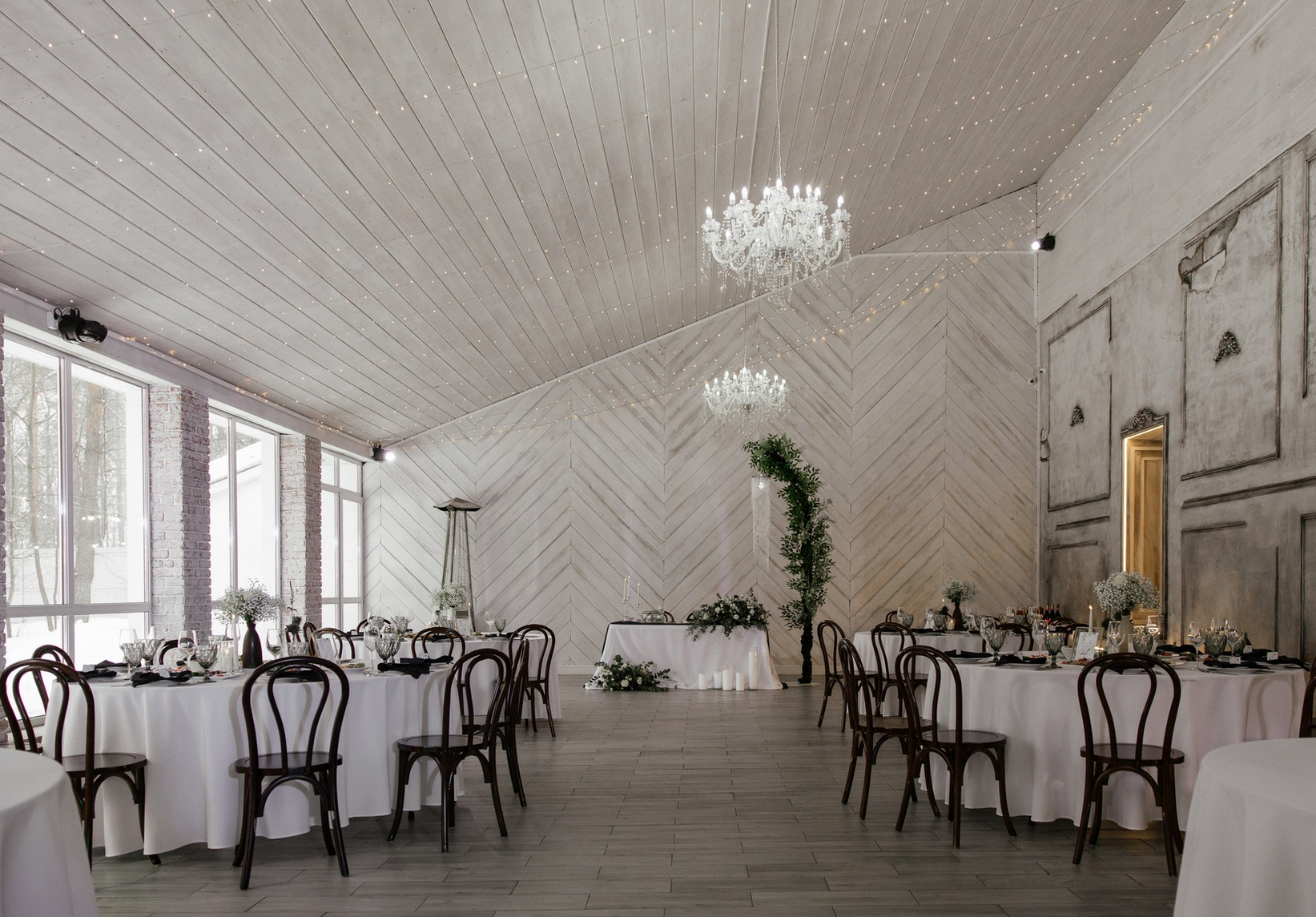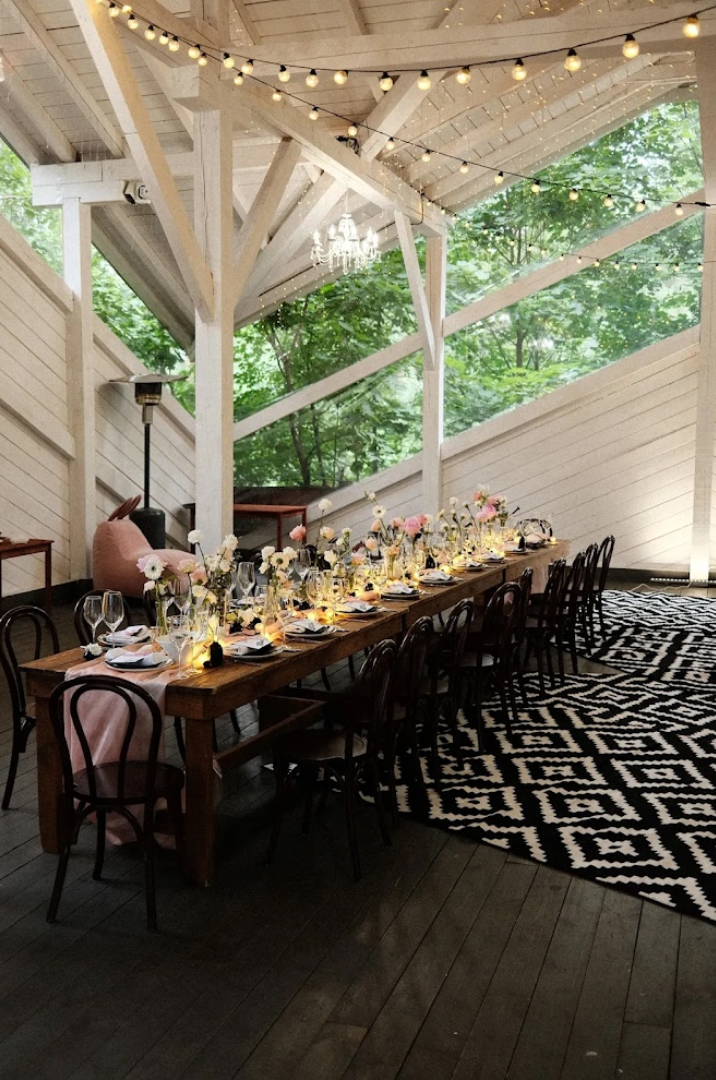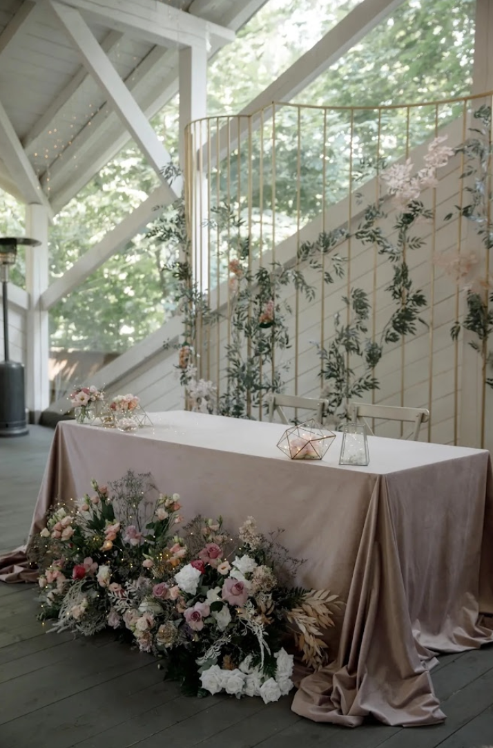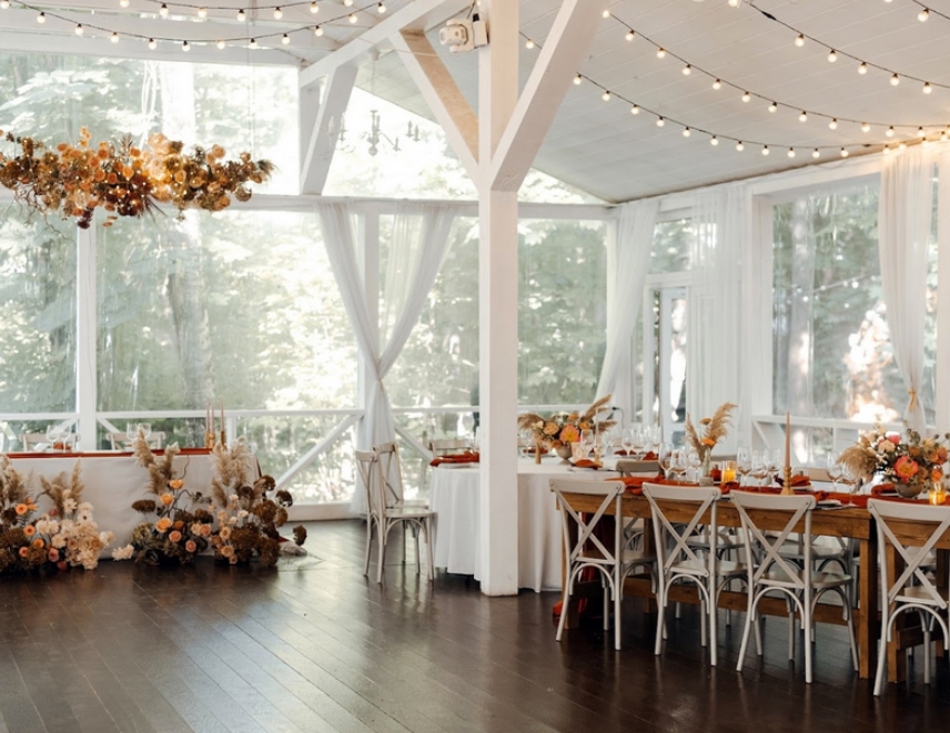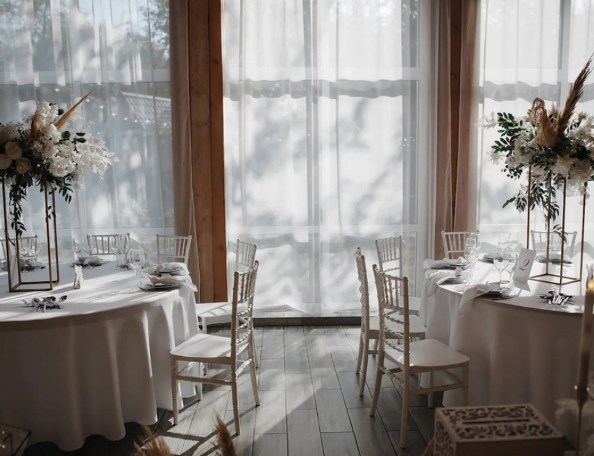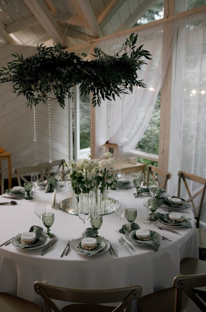 Возможность провести свадьбу в одном месте с выездной церемонией. Несколько ресторанов. Есть коттеджи для размещения пары и гостей.