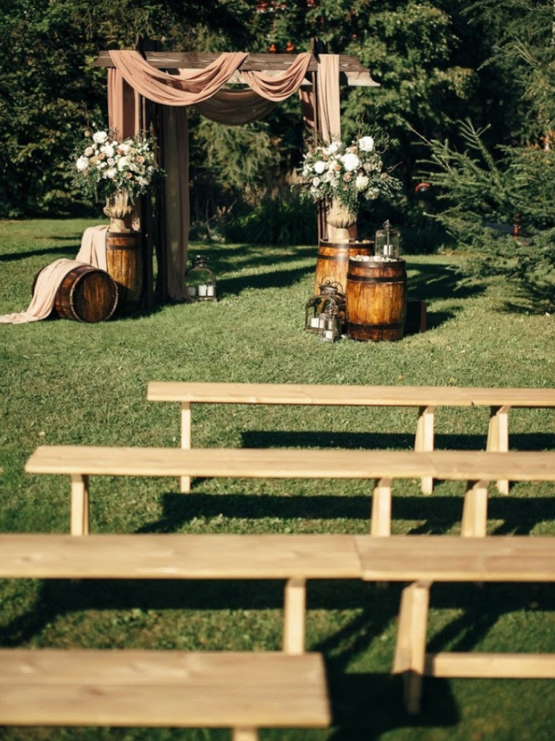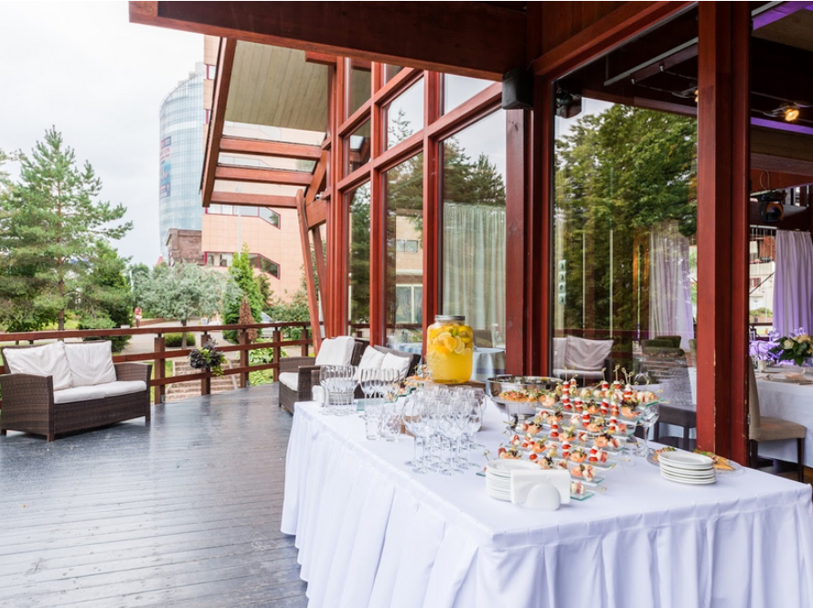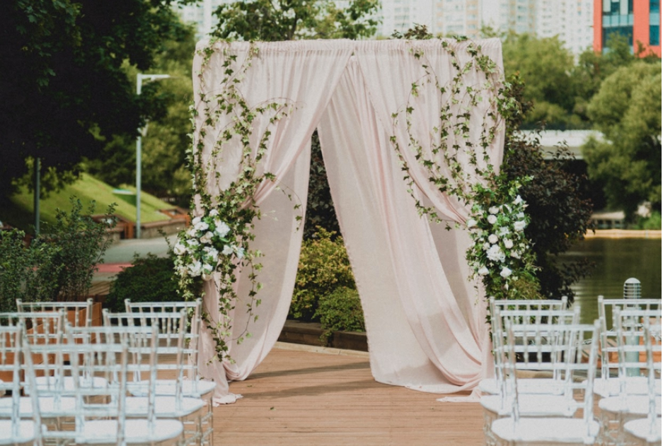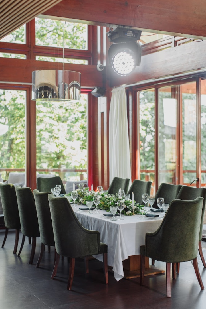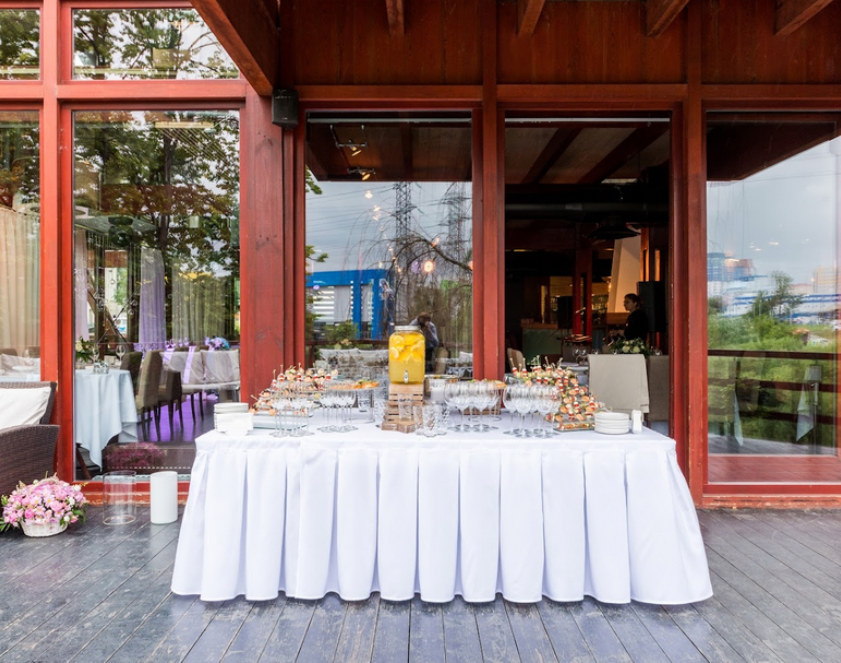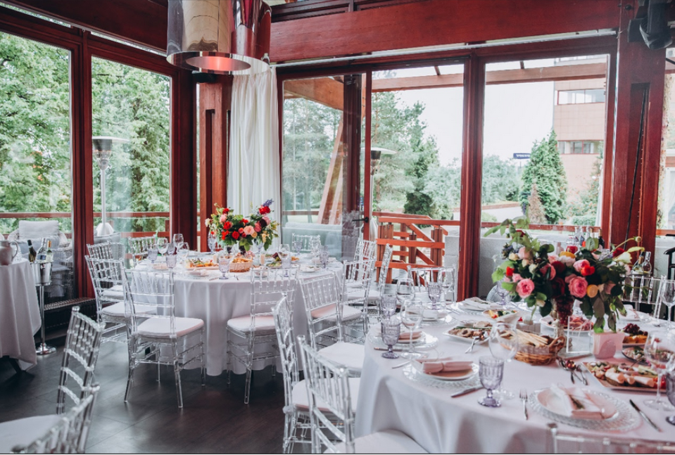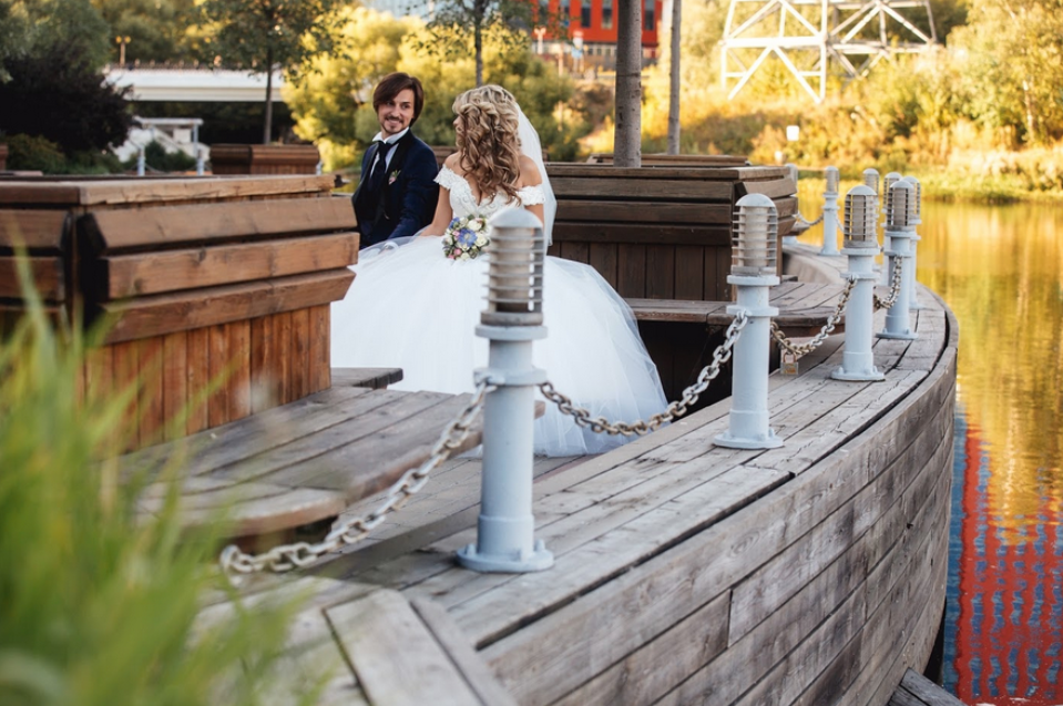 Возможность провести свадьбу в одном месте с выездной церемонией недалеко от воды, возможность аренды катера.